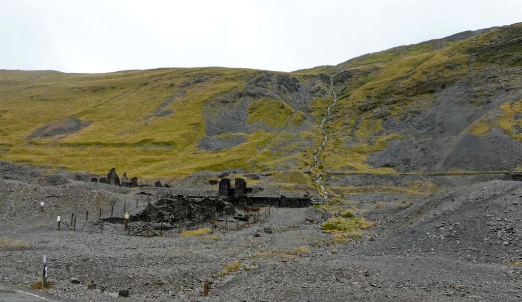 This area was interesting, with many km of mining residue on both sides of the road. Lead mining used to be very prevalent in the region. Piles of waste are dumped everywhere. Old buildings are all destroyed, looking like there had been fires within?