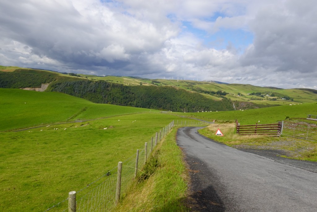 The road goes up, then up a bit more to the junction. You can see further down the valley.