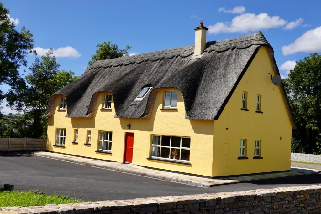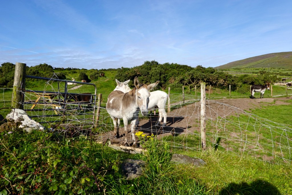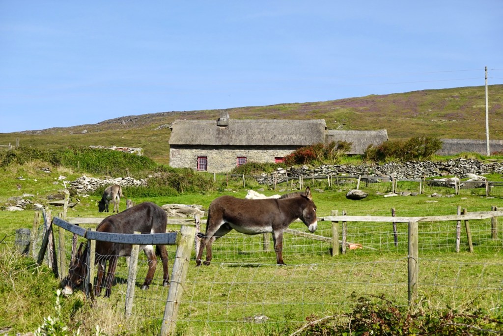 The old building behind the donkeys were used during the famine to house two families. They were constructed by the Earl of Cork.