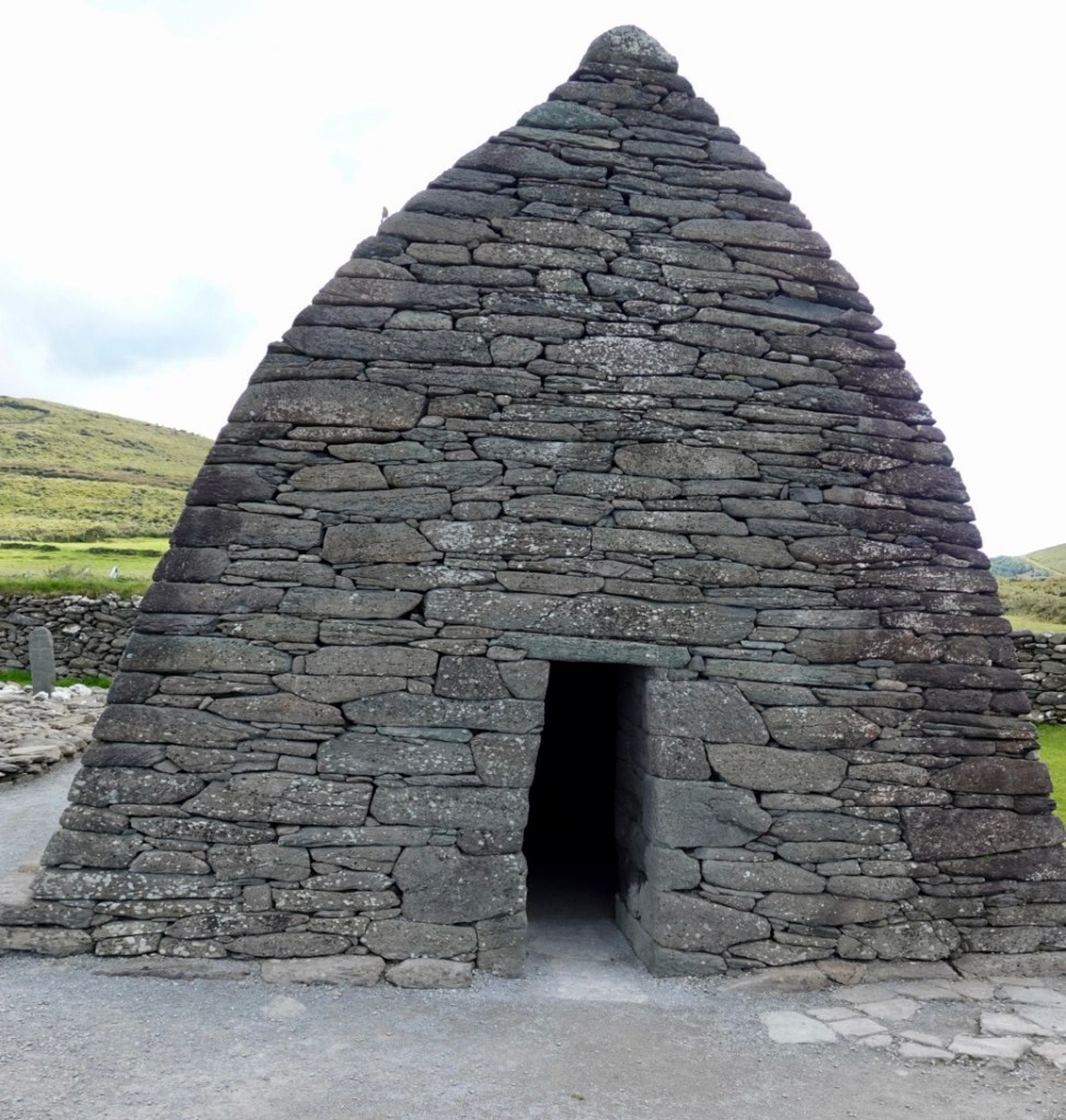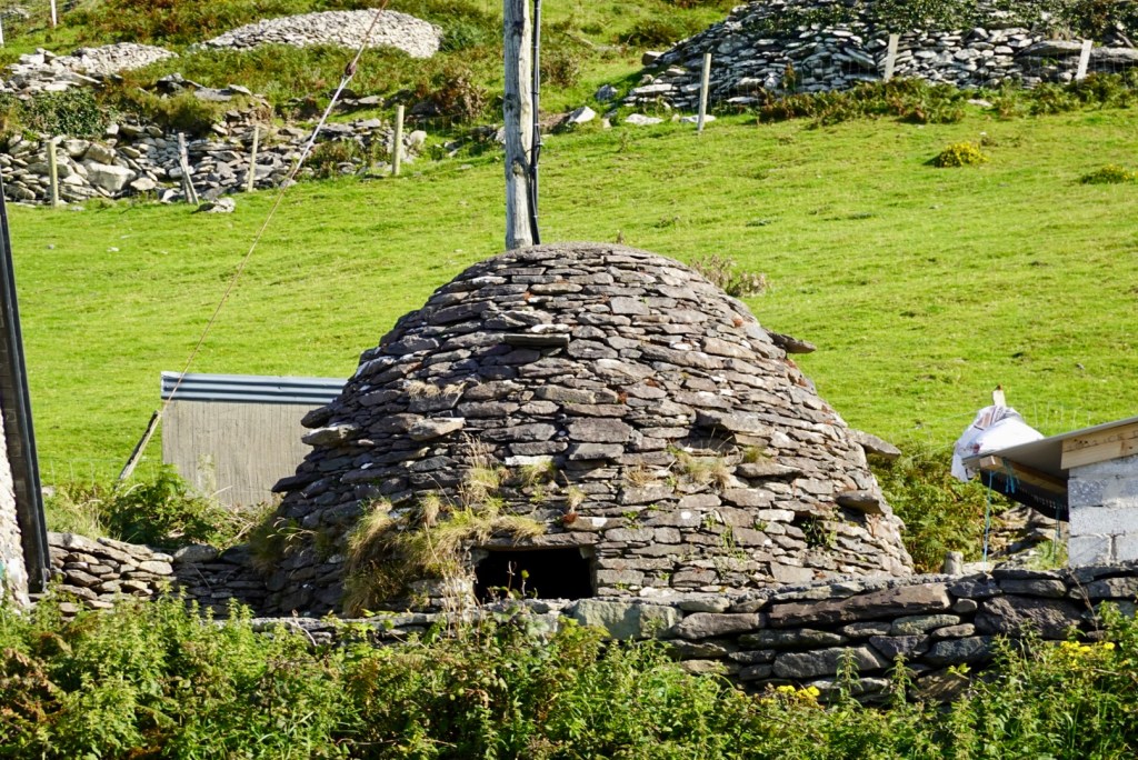 A beehive hut. There are many of these scattered around the Dingle Peninsula. Their age is disputed, but scientific evidence states the eldest no older than 700 BC…..so,they are pretty ancient.