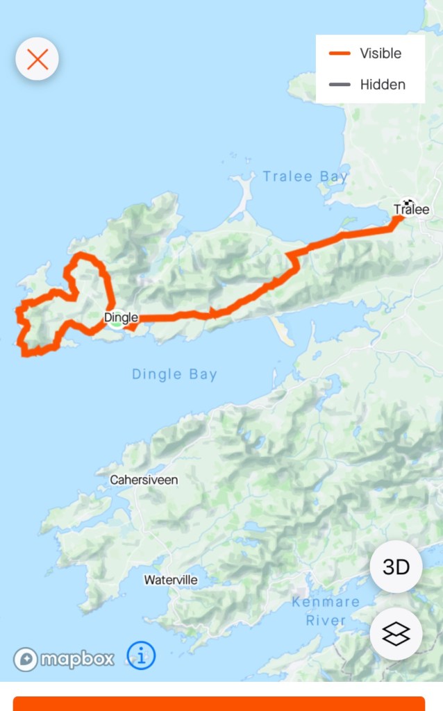 We are in Tralee. It was another great day, 102 km, 960 m climbing. The temperature got up to 25c today and I finally have a leg tan despite sunscreen.