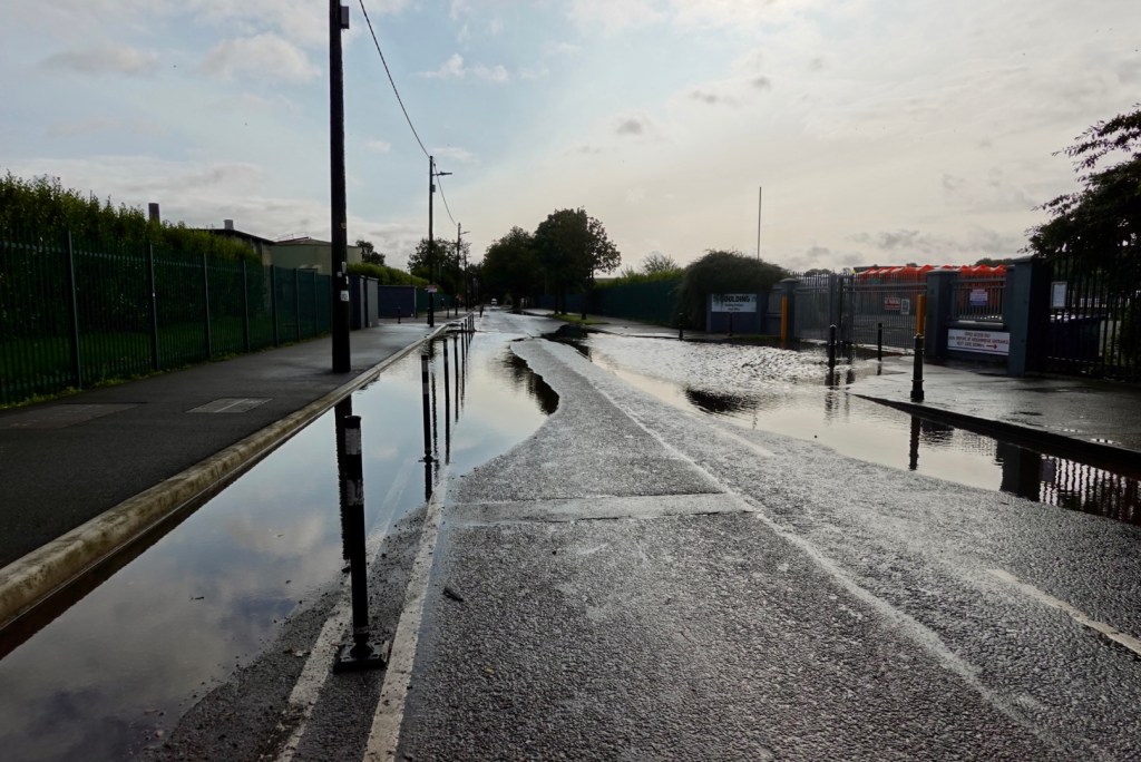 As we left Cork evidence of the storm were evident. The bike path we were on is on the left.