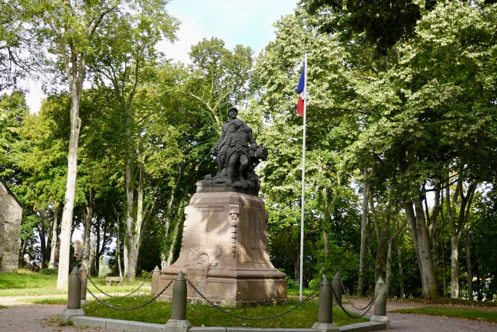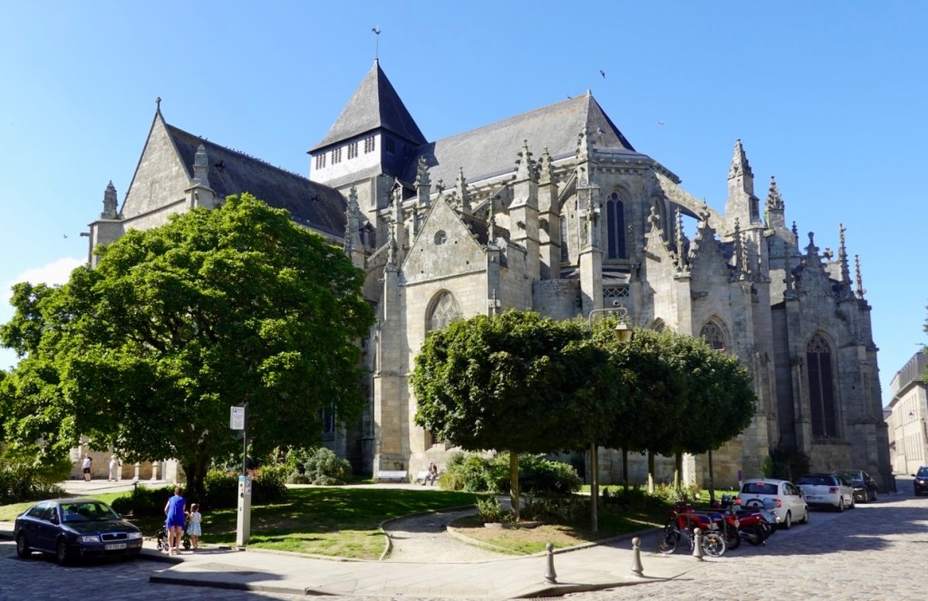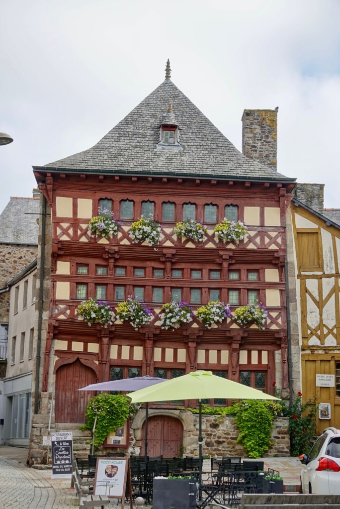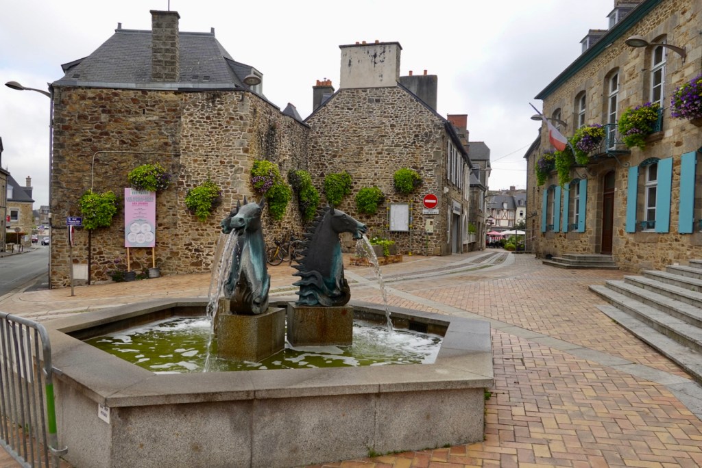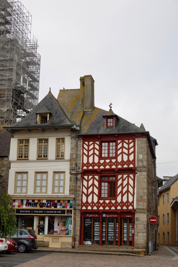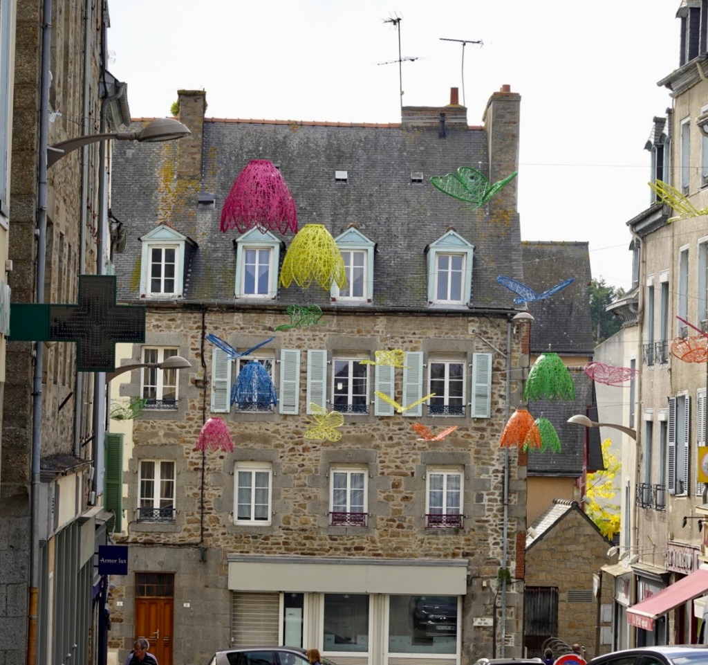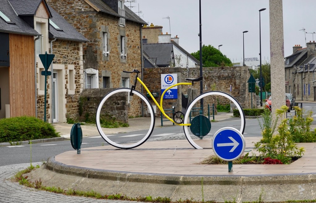 Lamballe was where we stopped for a morning coffee, in the town square. There are half-timbered houses in the historic town center many turned into exhibition spaces and craft workshops. They also have interesting art on their roundabouts.