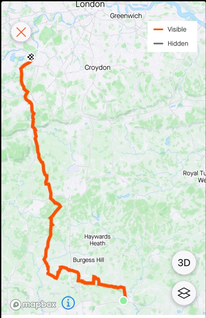 Some busier roads initially, but we did turn onto quieter lanes for much of the ride towards London. Many forests and commons, a few lakes and quirky churches.