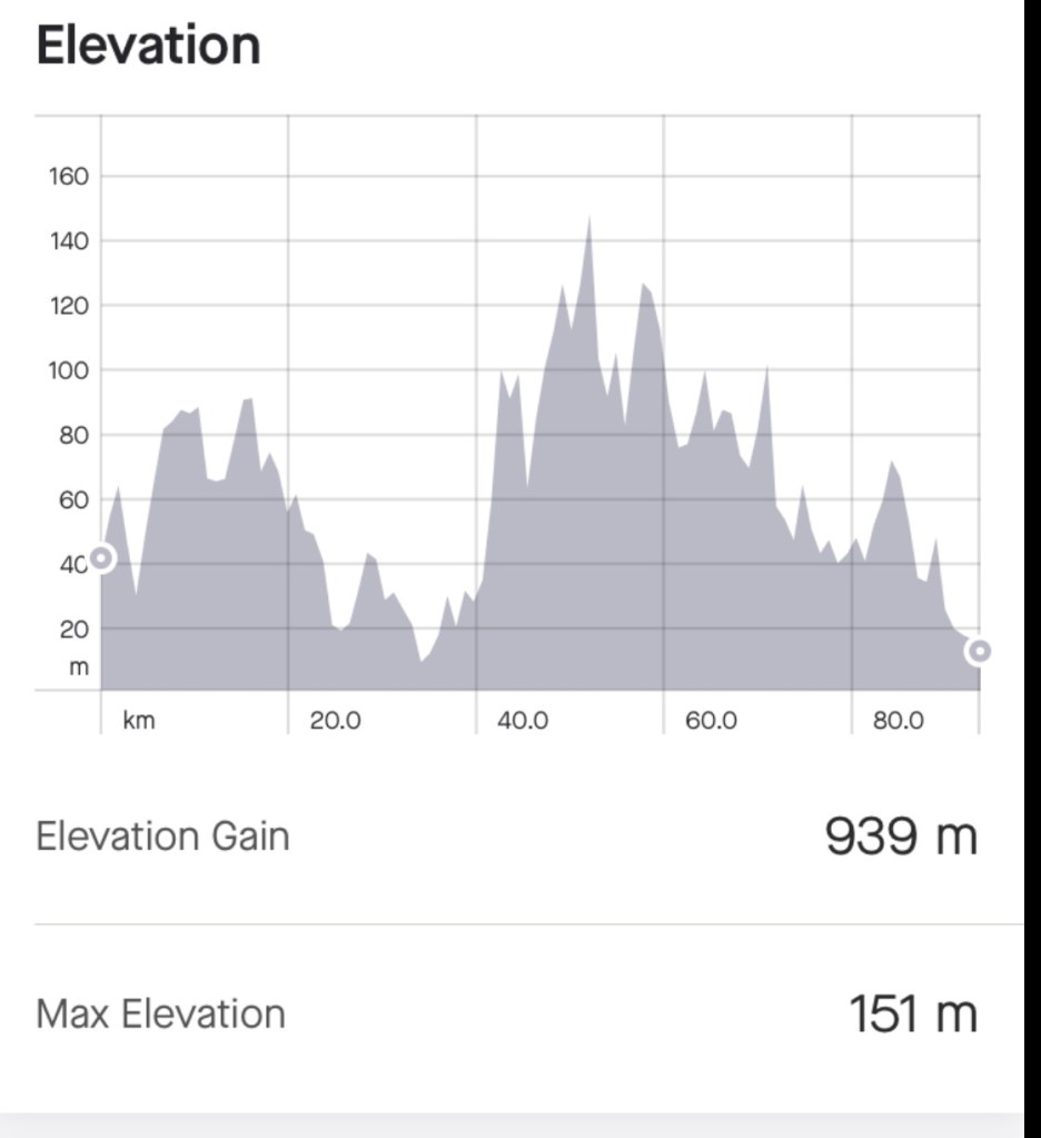 So here we are, another day done and dusted, two more left on the road. 95 km today and a lumpy 939 vertical metres climbing.