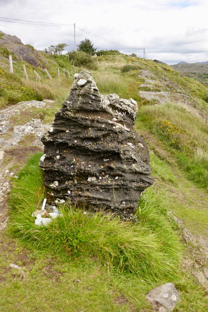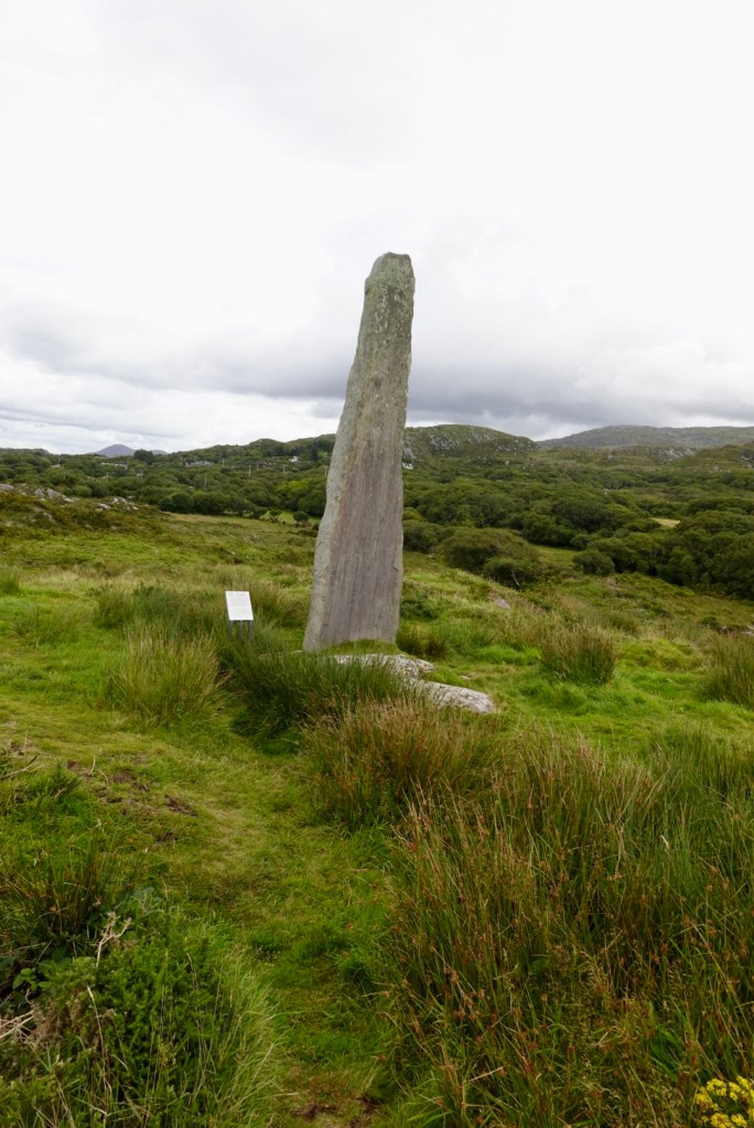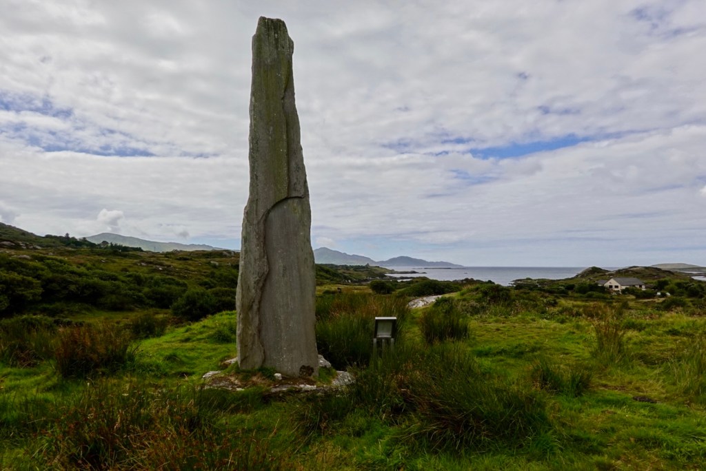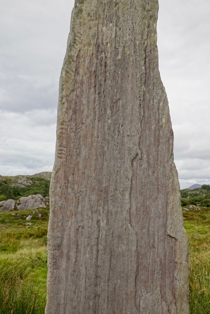 Once back on the coast, we deviated to visit the ancient Ogham Stone at Ballycrovane. It is the tallest known Ogham stone carved in the 4-6th centuries. It is the tallest of its kind in Europe at over 5 metres in height.