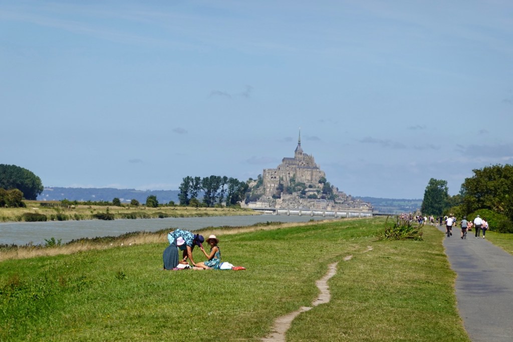 The last 10 km or so into Mont St Michel was on a shared pathway. Gravel for the most, then sealed. There was a super strong headwind, and the closer we got, the more people there were.
