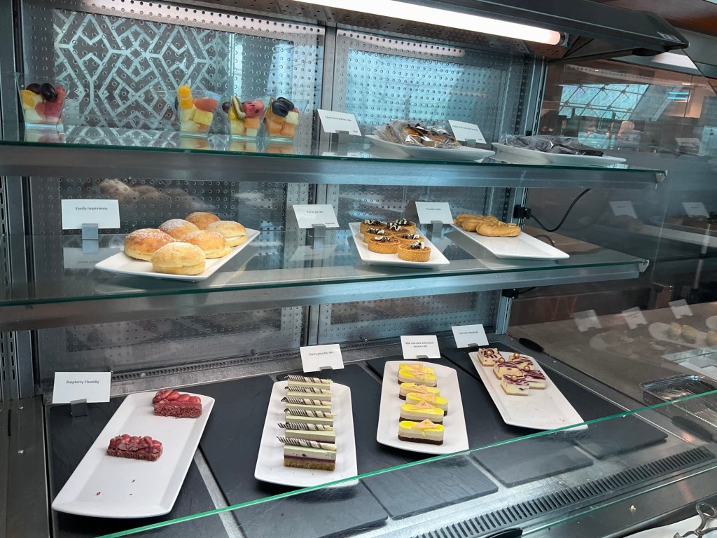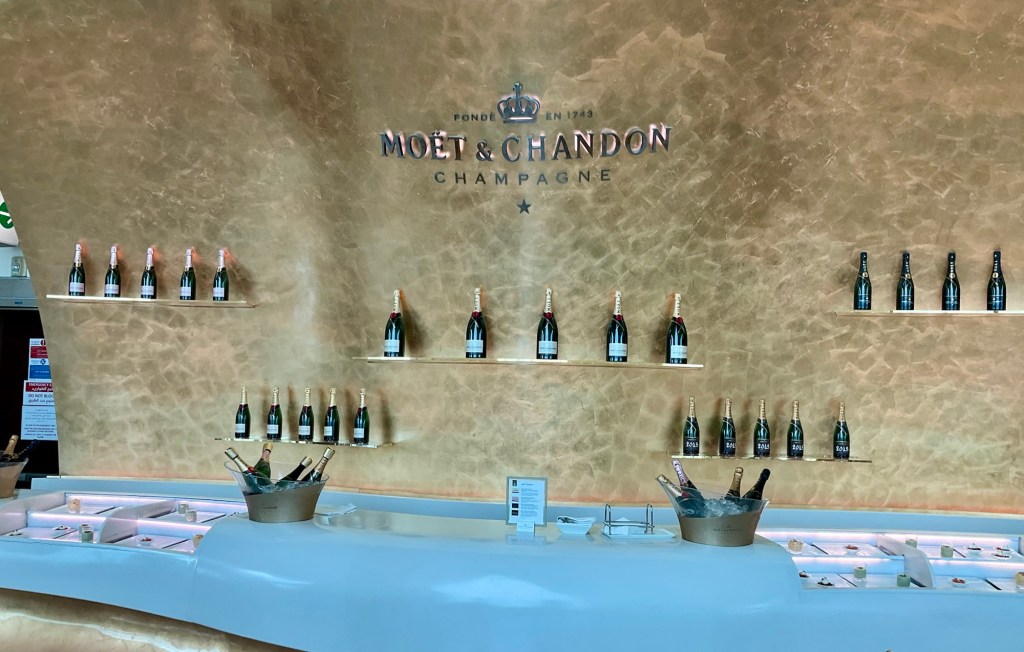 This Moet and Chandon bar is nearer our seats, you can help yourself. Not something either of us would partake in, but just one part of the offering that seems popular for many. I stick to Perrier sparkling water.