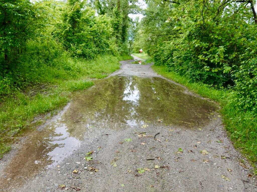 At the end of the lake we followed a river. It was quite swollen, the gravel path had decent puddles. We thought these were decent but it got worse.