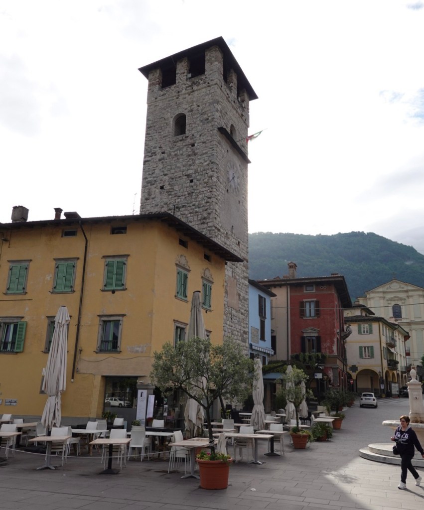 Pisogne has an interesting piazza- Piazza Mercato. The town goes back to medieval times, and the water edge used to be right up to the tower, so a fair bit of land fill has occurred.