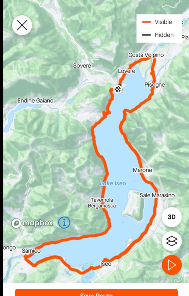 In 2018 I spent a night at Pisogne, Lake Iseo during the 2018 Giro d’Italia. As we were transferred to accomodation I really liked what I saw, and further research showed that a lap of the lake is around 64 km cycling.