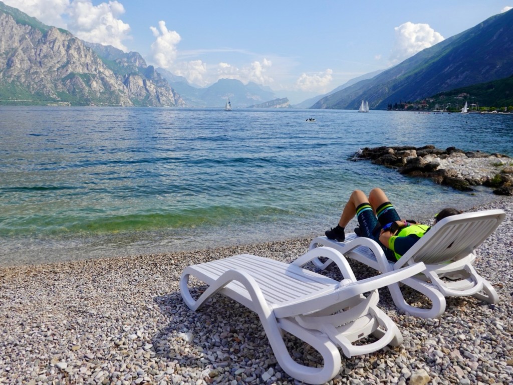 We had a few options for today including riding a lap of the lake (149 km) or riding to Sirmione and getting a ferry back, or riding to Malsecine and getting the furnicular to the top of Monte Baldo and riding back.
