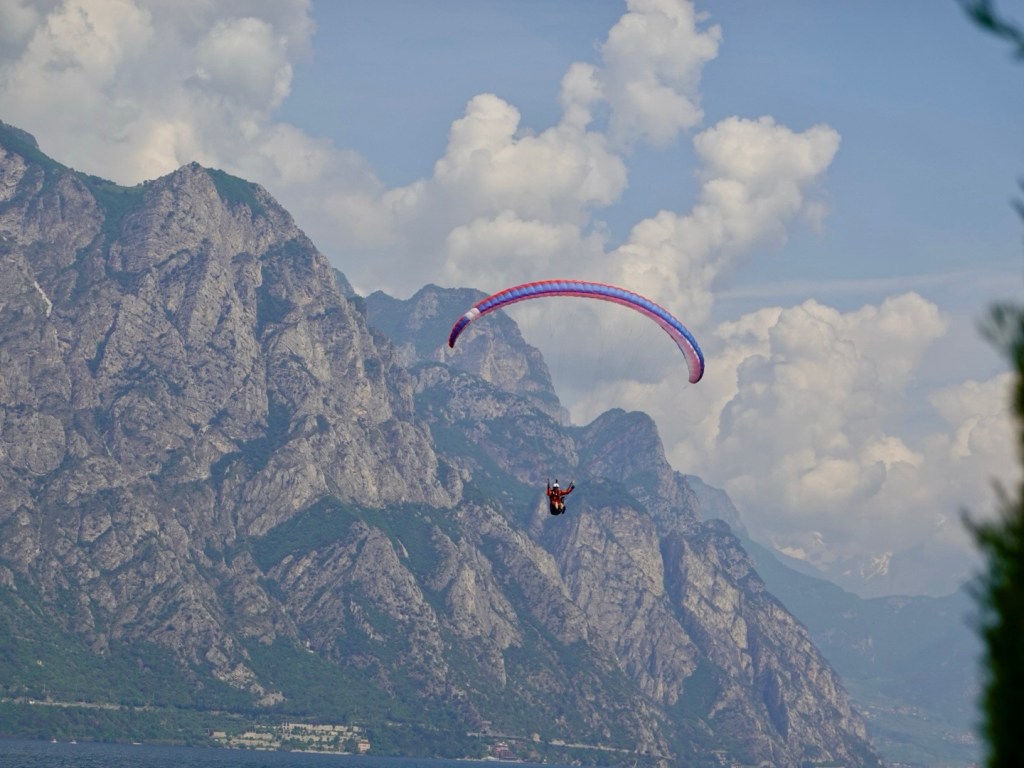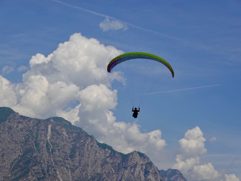 As we rode past his shute was snagged in a tree and he was walking out of the lake. Lucky as the road was only metres away.