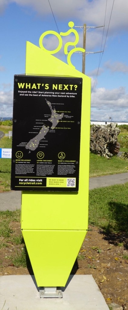 We had a pleasant lunch in Kohatu with our newest cycling friends. It is one of the pleasures of touring meeting like minded souls. Their vehicle is behind with Anne’s other yellow passion on top.