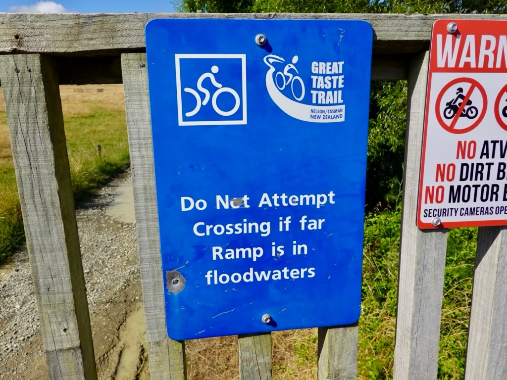 We crossed quite a few bridges. This one is quite long. The warning sign about not crossing during flooding makes you wonder just how high the waters can inundate.