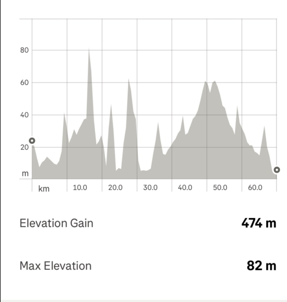 Some rolling hill climbs but none were too long. More distant views.