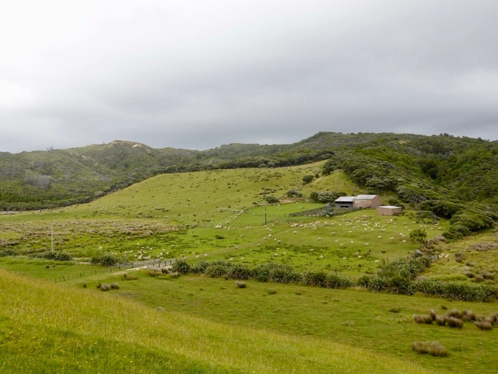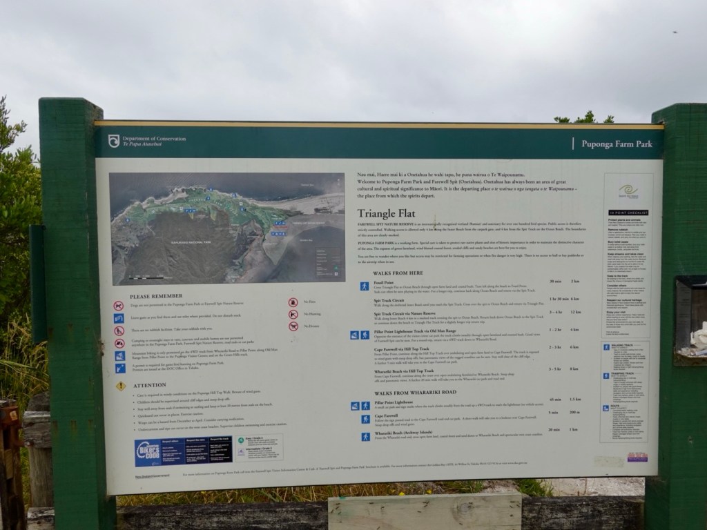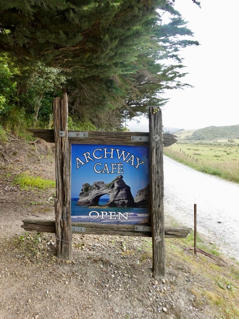 It was back onto gravel roads at Port Puponga, heading in a generally westerly direction. The signpost indicated it was 6 km to a camp ground that also had a coffee shop.
