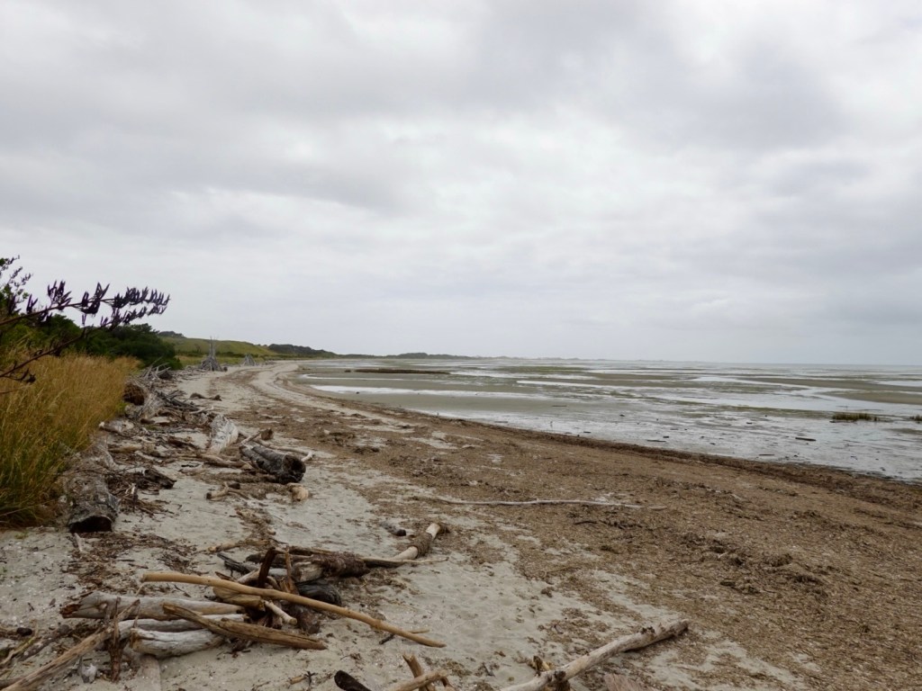 Our view from the inner spit, forming part of Golden Bay. Very shallow waters, lots of drift wood. This is on the stable land part.