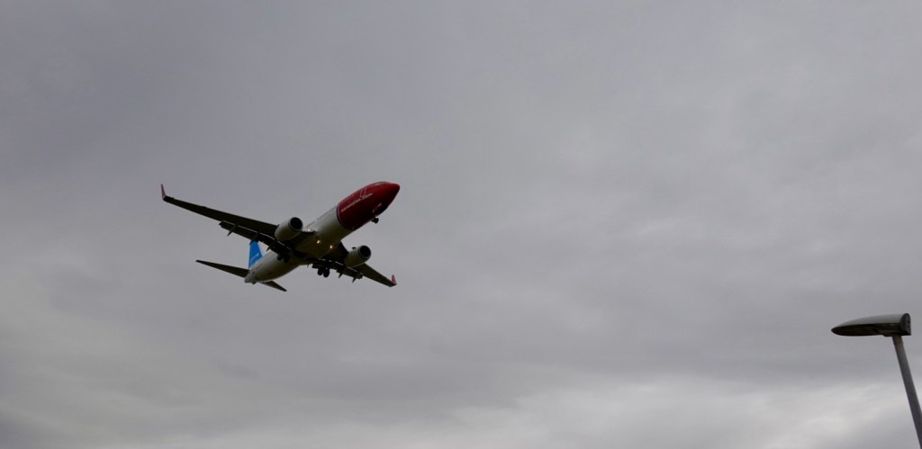 First stop was the airport as the path goes by the runway perimeter. A Norwegian plane was landing.