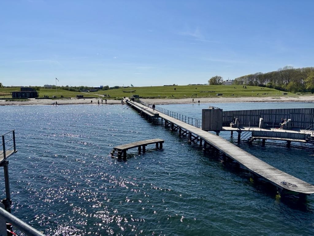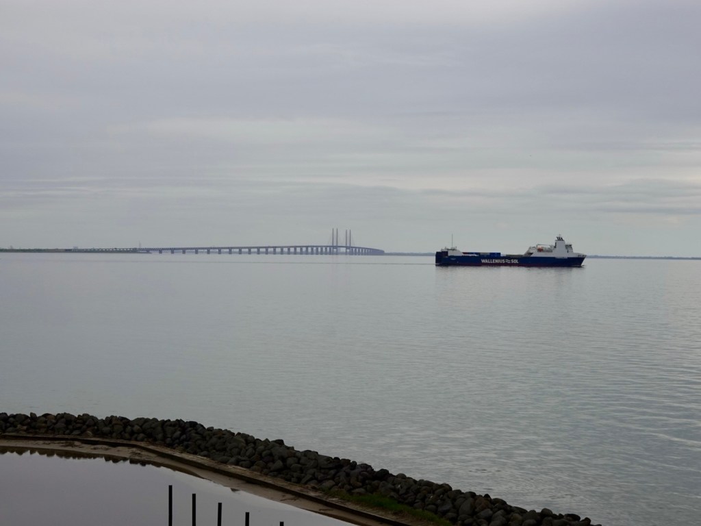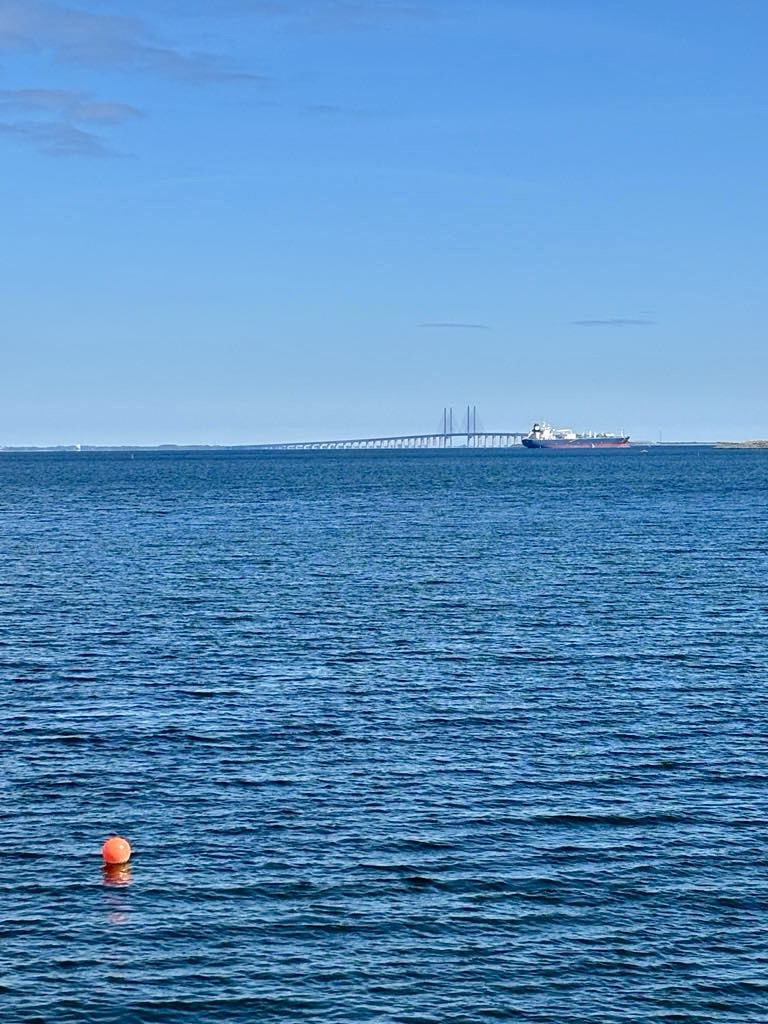 Looking back out the Oresund and a ship leaving, likely from the Port of Copenhagen.
