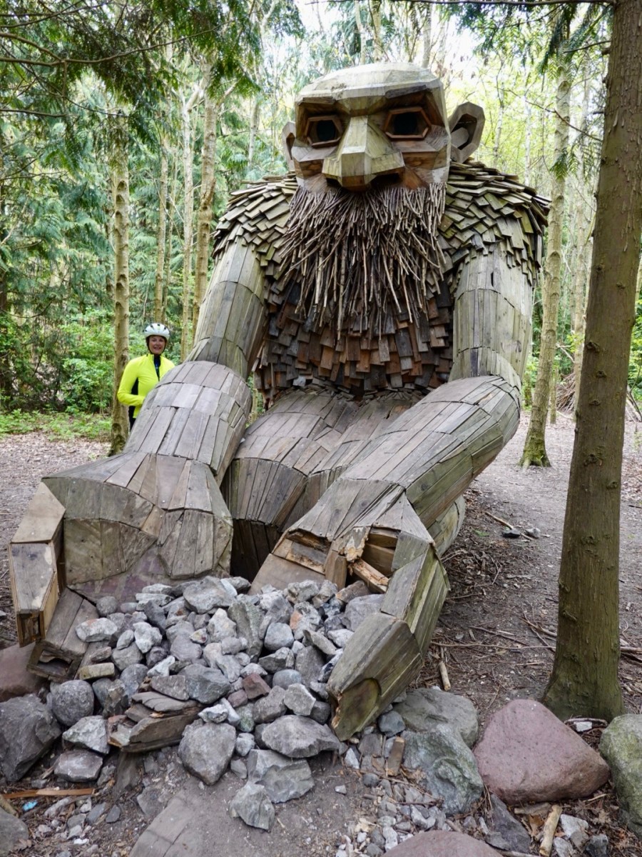 I knew that Thomas Dambo had a troll installation nearby. Nothing is marked on maps but from his website could see we needed to head off road down a gravel path.