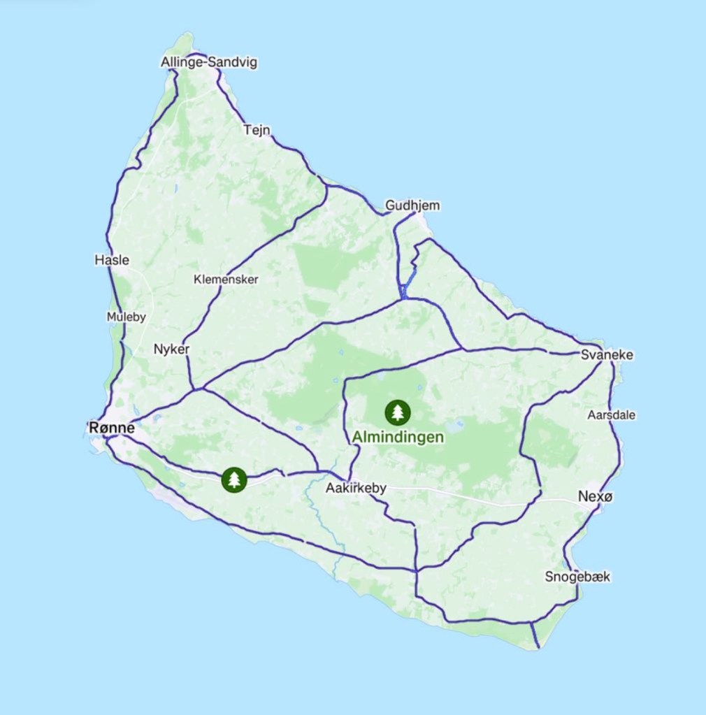 This is our heat map from riding 270 km on the island. Reasonably comprehensive.