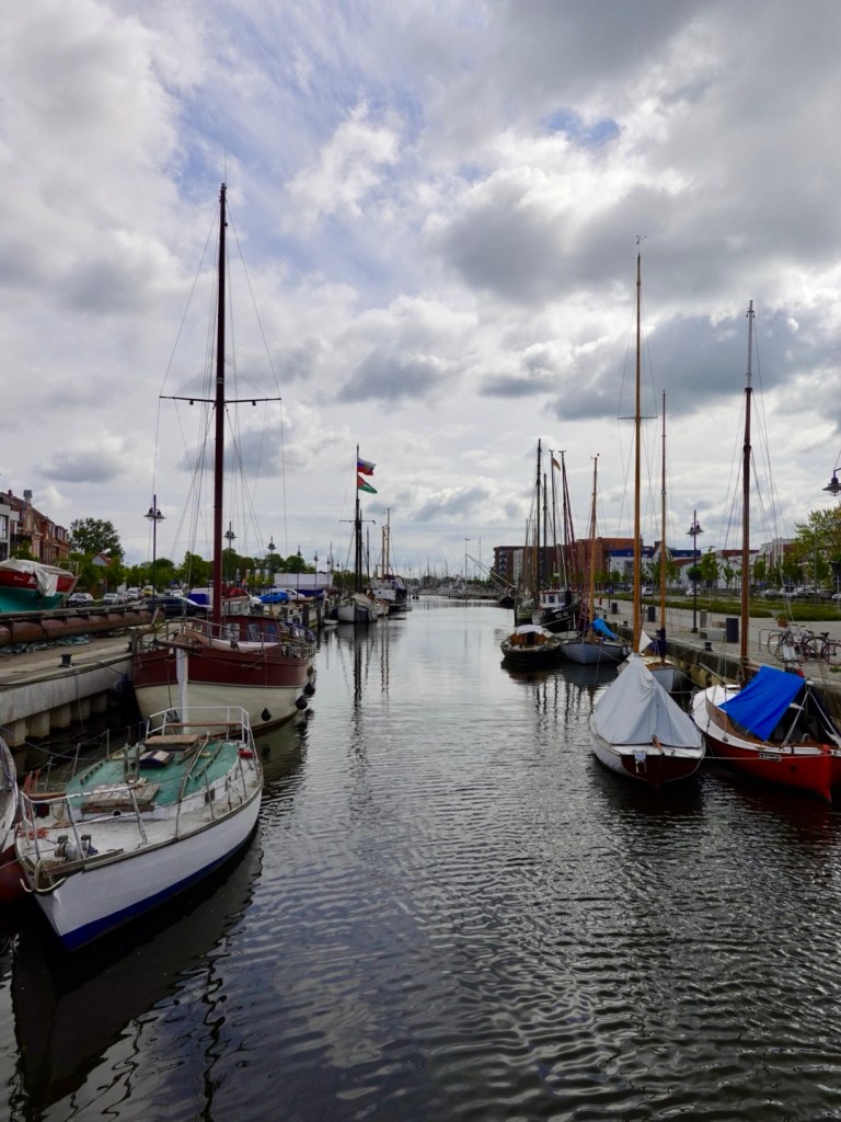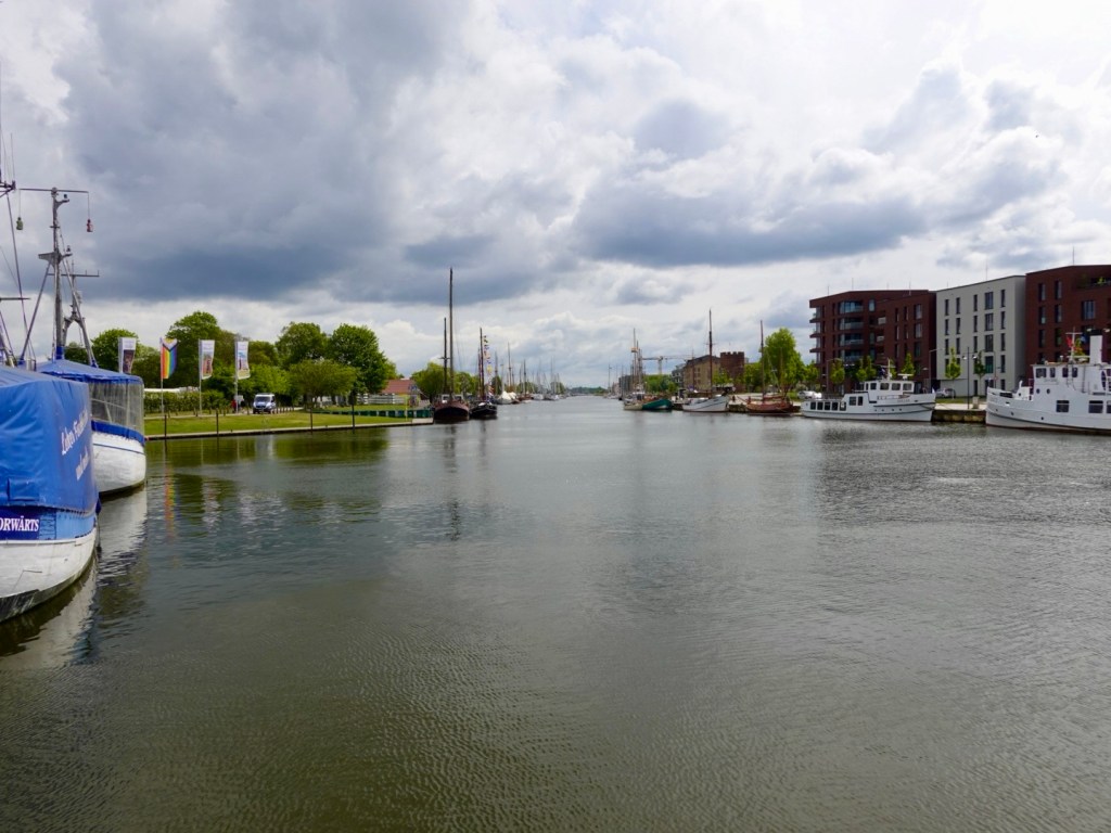 Plenty of renovated boats in the first large town of the day, Greifswald. The river Ryck runs through and at the mouth through a series of bays into the Baltic Sea.
