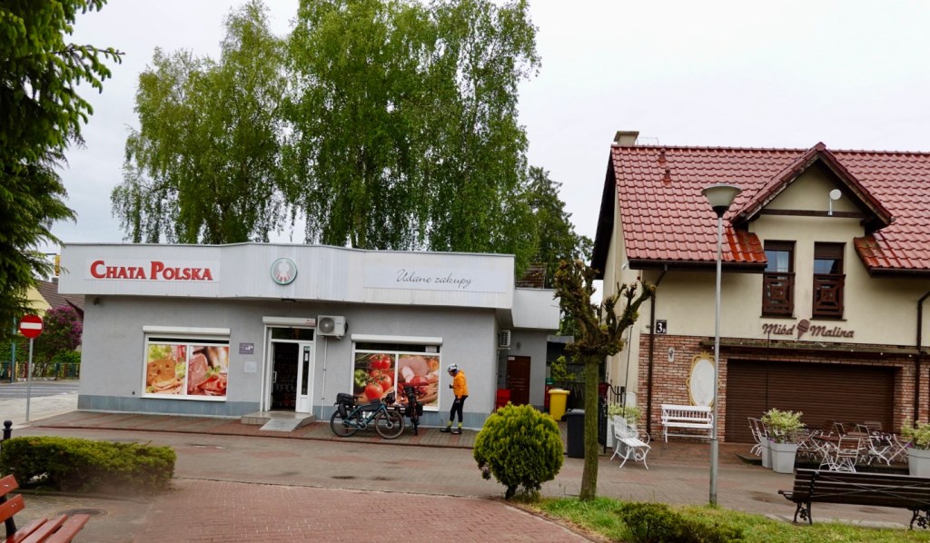 We stopped in a small town looking for food. A statue of Neptune drew our attention in the village of Wiselka. We found a small shop to grab some supplies.