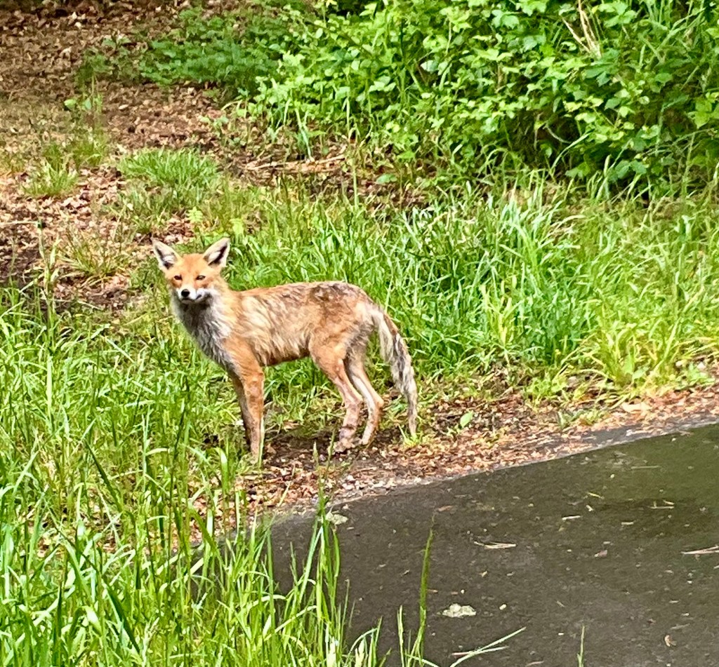 We continued to ride adjacent to forests between the ocean front and the main arterial road. A curious fox darted out to have a better look at us. Unlike the non cooperative deer and squirrels, this little one stood watching us enabling me to grab my iPad.