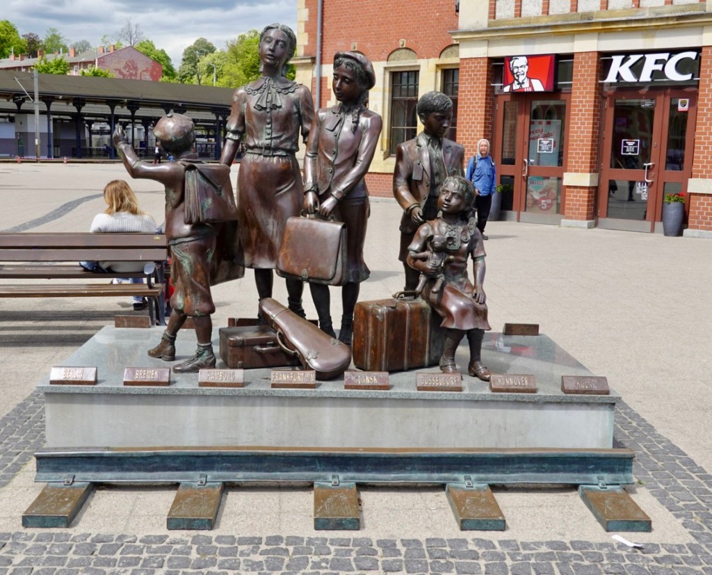 We did stop to view this lovely statue. The Kinderstransport monument depicts children waiting for their train to arrive. Many children died during the war. 130 were transported to England to safety from the Gdansk region.