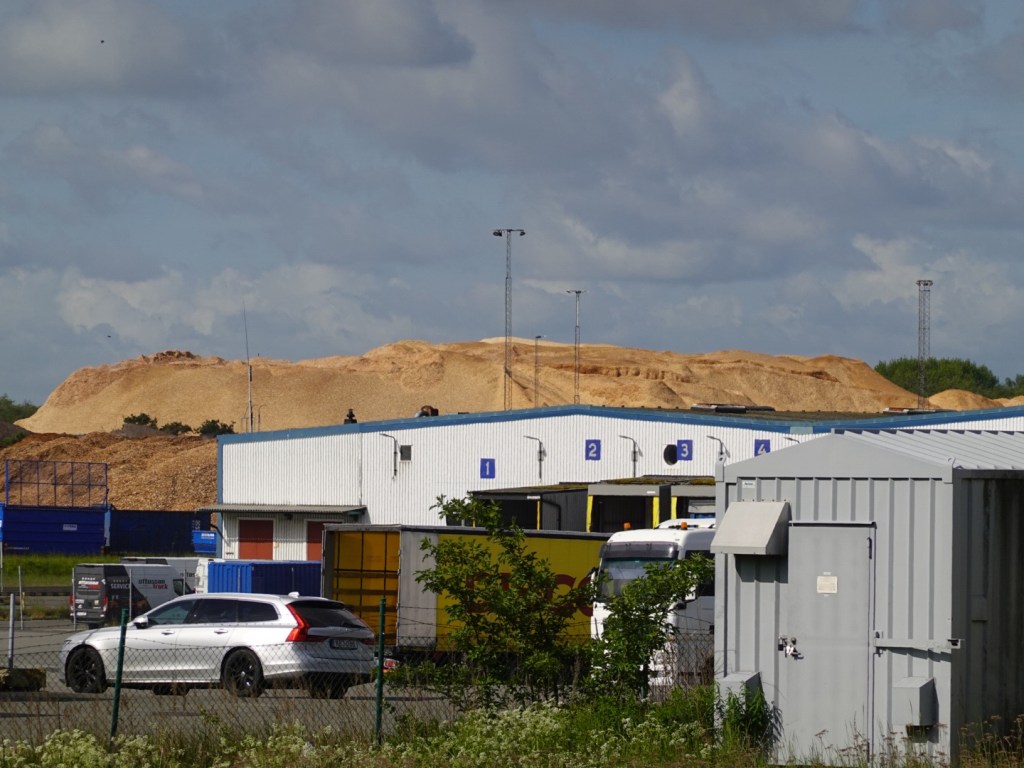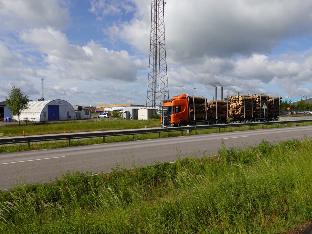 Not all we see touring is beautiful. You cannot avoid industry. We rode past a very large paper mill, complete with wood chip piles, trucks arriving with plantation logging.