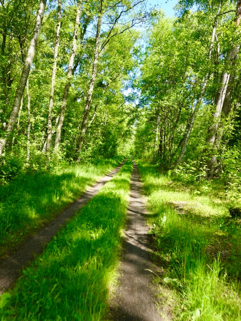 For some distance we followed what appeared to be an old rail line with dense vegetation either side, and later, cows grazing in the forests.