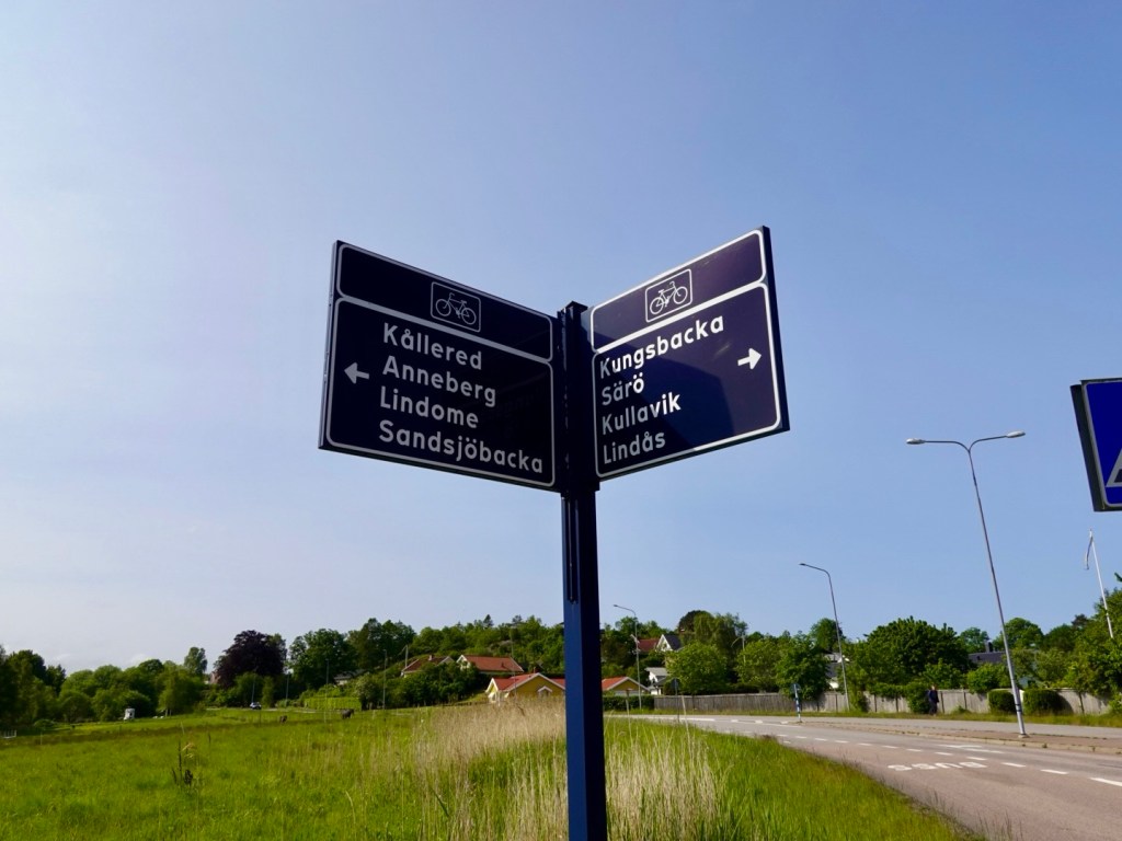 It took many km to leave Gothenburg behind, predominantly industrial areas. The path followed a major highway for some distance, before we started to peel more to the west.