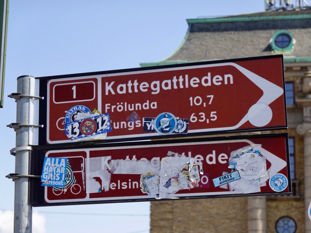 One final job. The Kattegatleden we had been following starts/finishes at the train station. It is a messy sign.