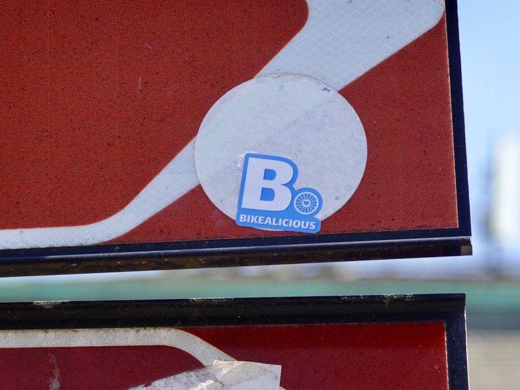 The sign has been enhanced with a Bikealicious sticker, the club that Cecilia leads on Zwift, boasting over 11,000 members.