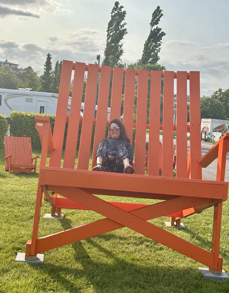 I had trouble getting up onto the big chair for this photo. It is very large!