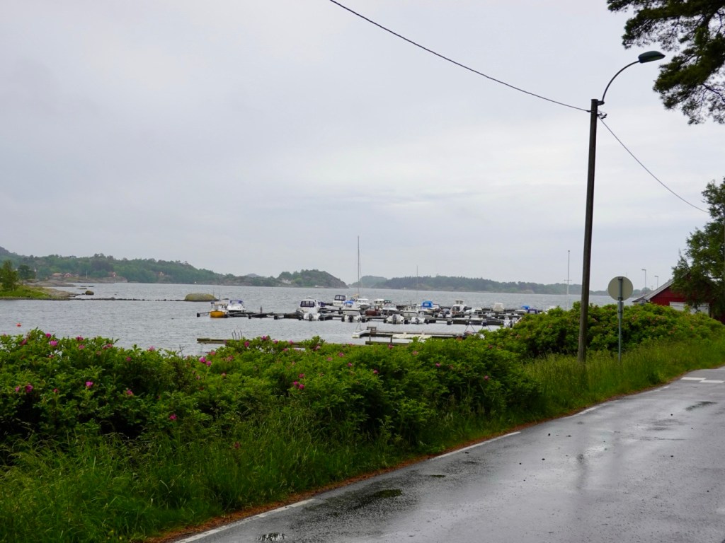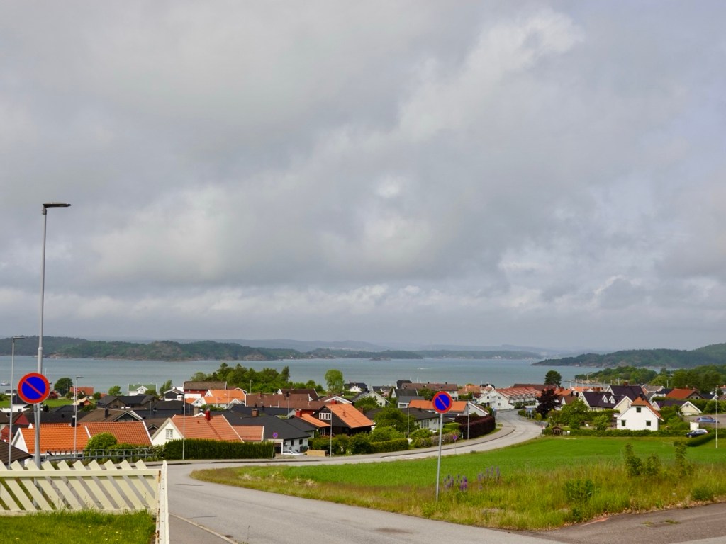 We made our way out of Sandefjord along a bike path, with very grey clouds.