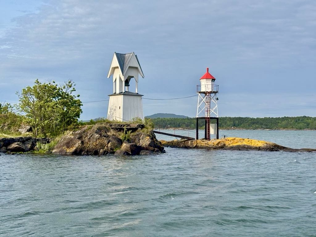 I like this photo. A small island with bell and mini lighthouse.