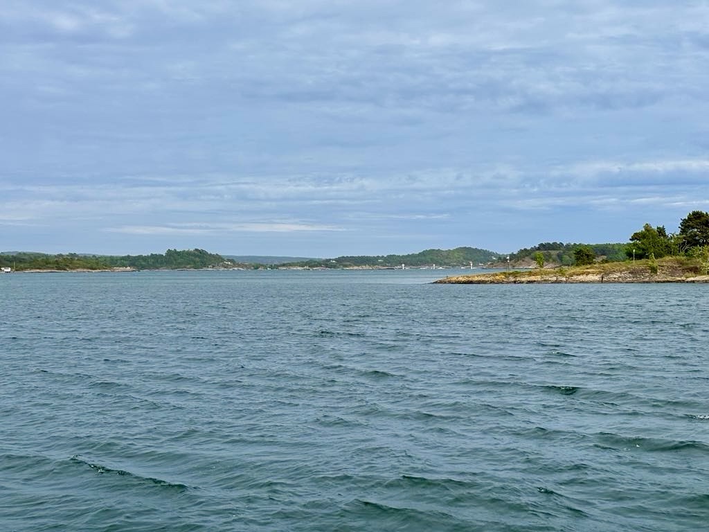 Distant view looking down Langesundsfjorden and where we head tomorrow morning.