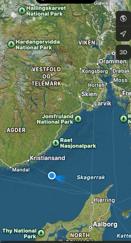 After 3 hours 15 minutes, we arrive in Denmark.