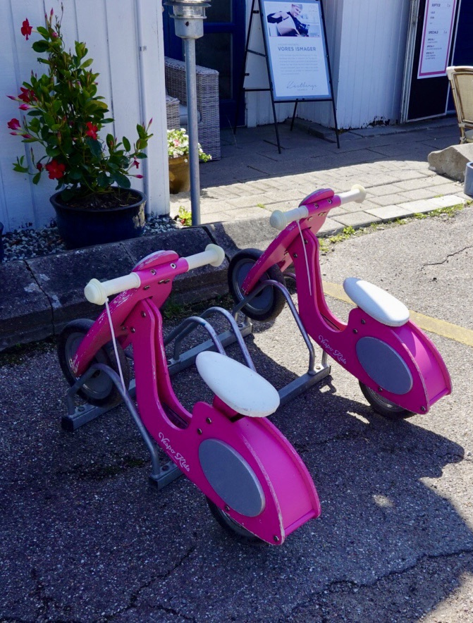We found a roadside shop hoping for lunch but their choices were limited to pizza and icecream so we grabbed a drink. They had these cute little bikes for kids.