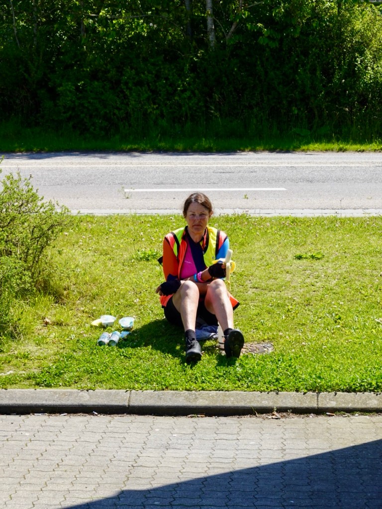 We found a roadside supermarket on the outskirts of Holbaek to buy some lunch and sit on some grass. Banana, canned coffee and chia and mango.
