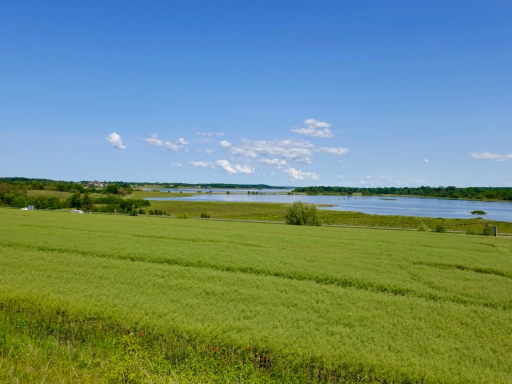 Within a few km, we were on quiet lanes, some dirt. It is very pretty here, lots of holiday homes stretching across the small peninsula.