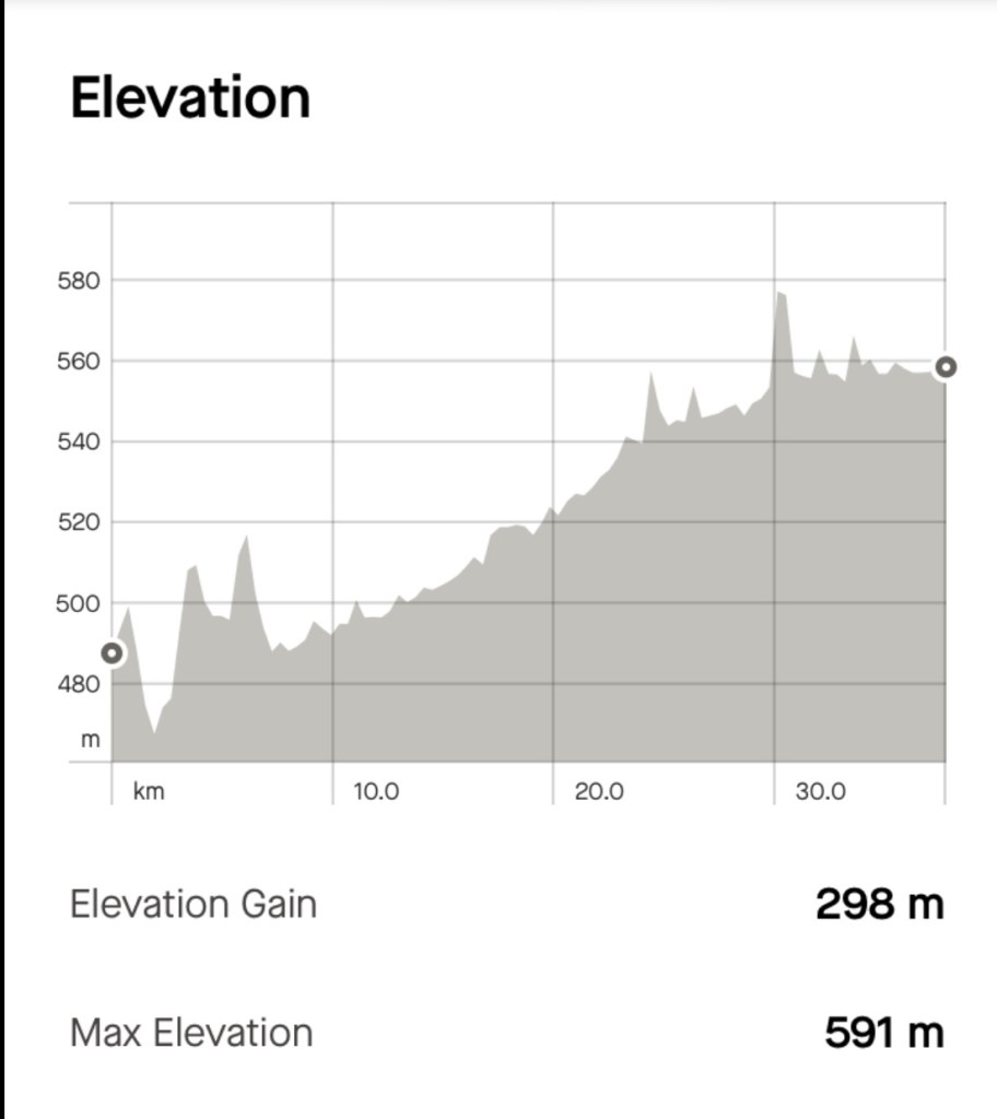 It does show that we traversed green hilly areas having climbed over 1600 metres, 99 km. The next two days are similar.