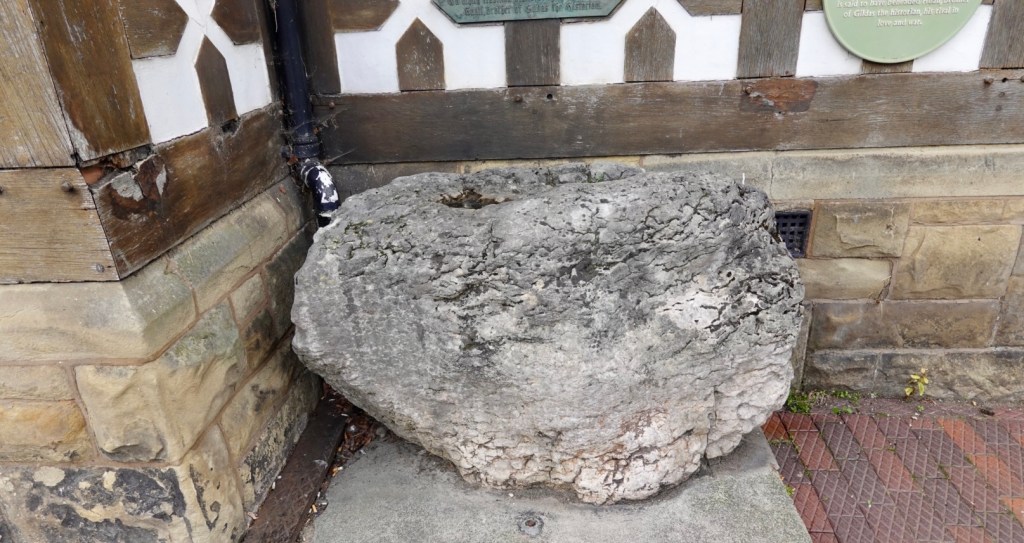 The rock is covered in small denomination coins and other ‘gifts’.