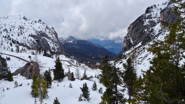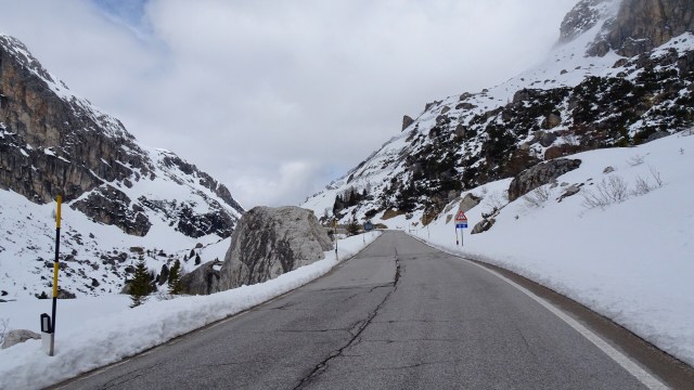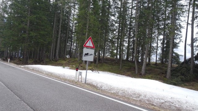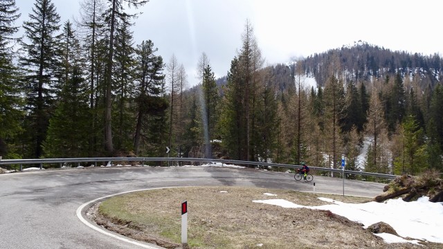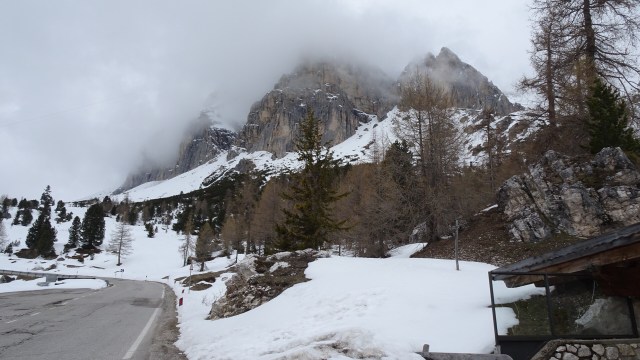 Now we had decisions to make. One part wanted to roll on down to Corvara. In fine weather, no problem, but this is an alpine region where conditions can change very quickly. The dark clouds ahead looked a tad ominous.
