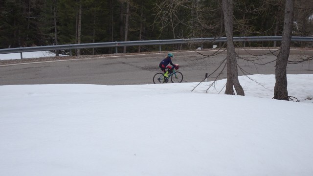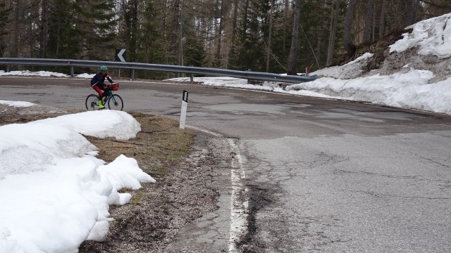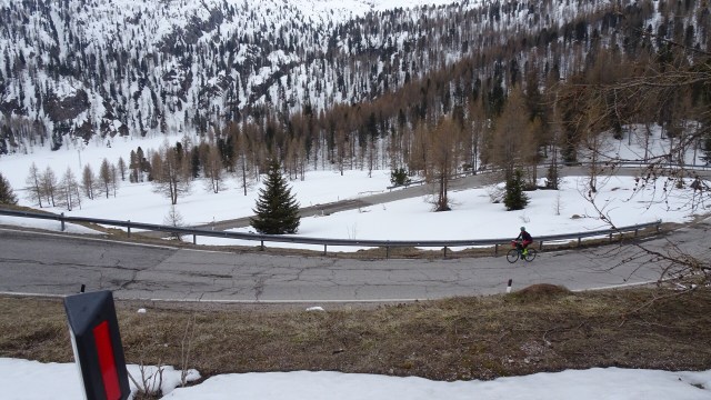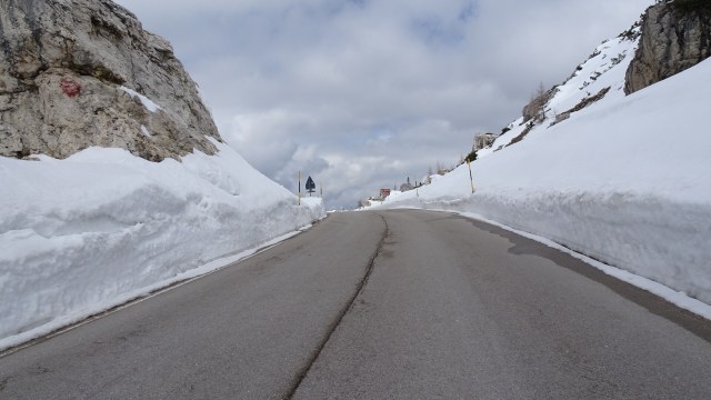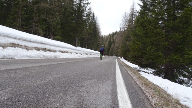 We climbed, again nothing new for the Dolomites, but it was an easier climb to Passo Di Cimabanche at 1529 m.a.s.l. The pass witnessed much fighting during WWI, with a military cemetery nearby and a bunker established by Mussolini.