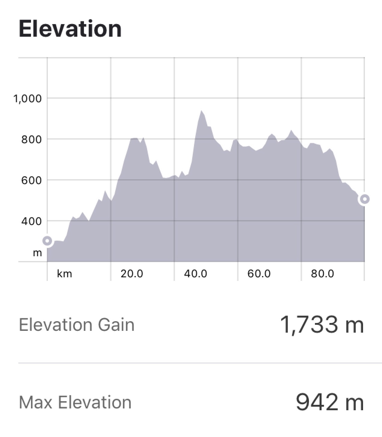 Our route today is below. We rode 110 km and climbed just over 500 metres.