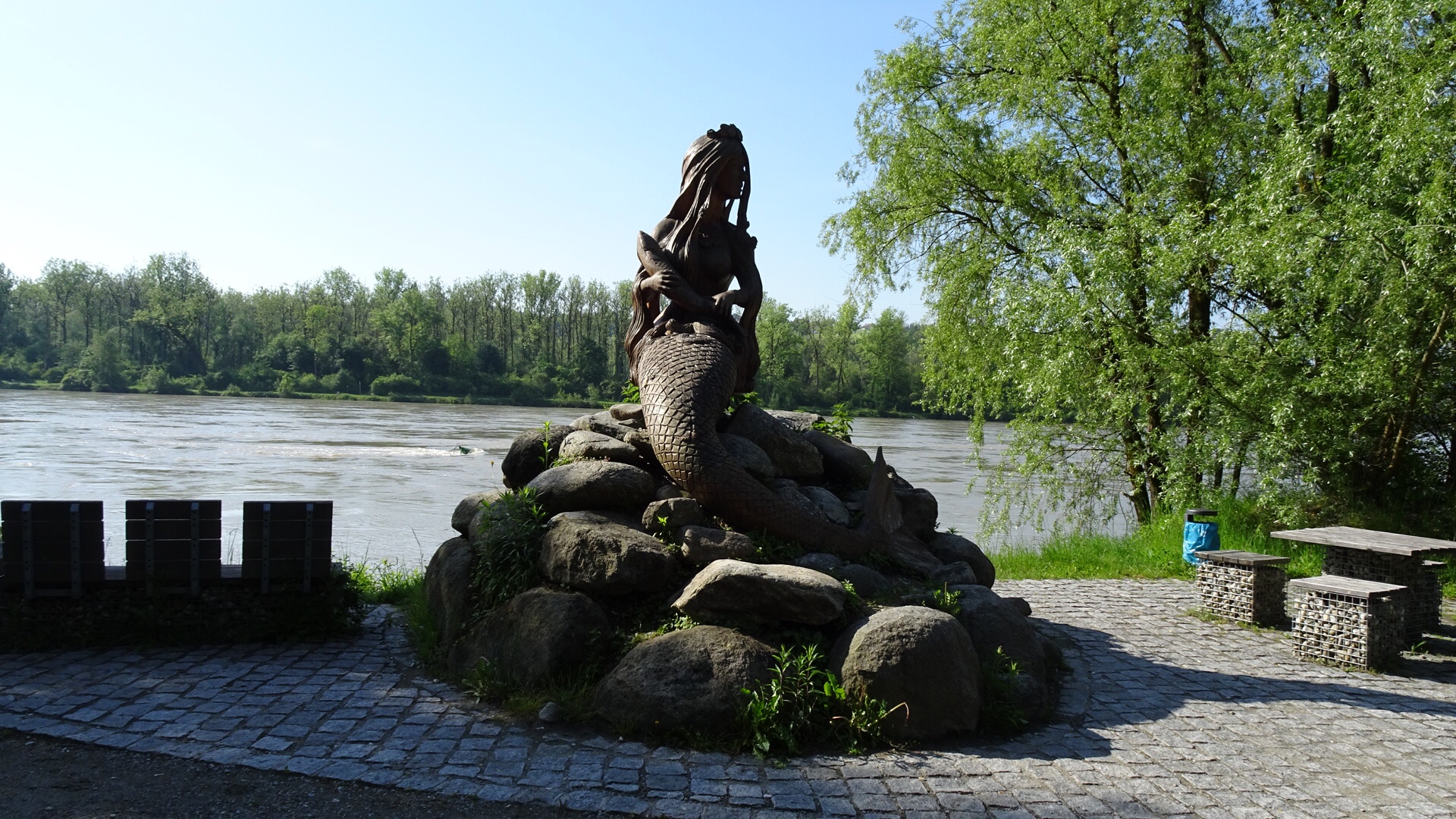 Small statues adorn the riverside. We found a place for a ‘coffee’ and a loo. The coffee was not the best, but it was warm.