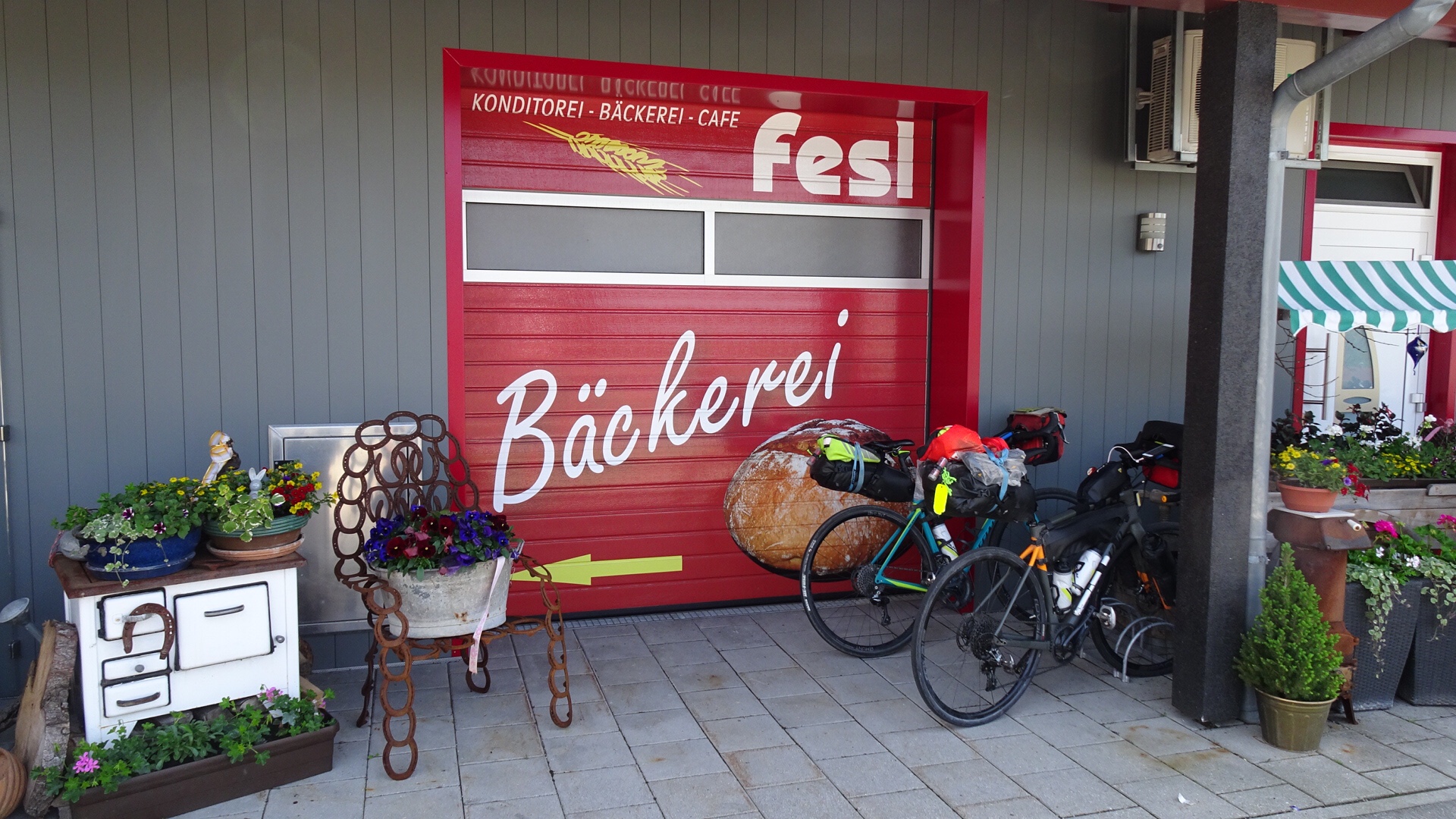 In between climbs (you tend not to stop and take photos whilst climbing), there were lovely views. At the end of the first longer climb, there was a cafe calling our name to stop! It had quirky ‘art work’ predominantly made from recycled horse shoes.